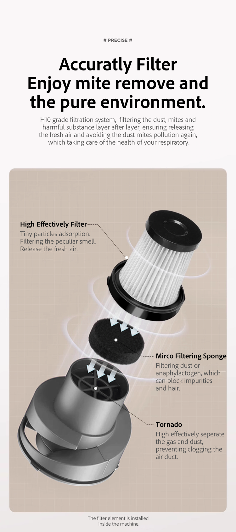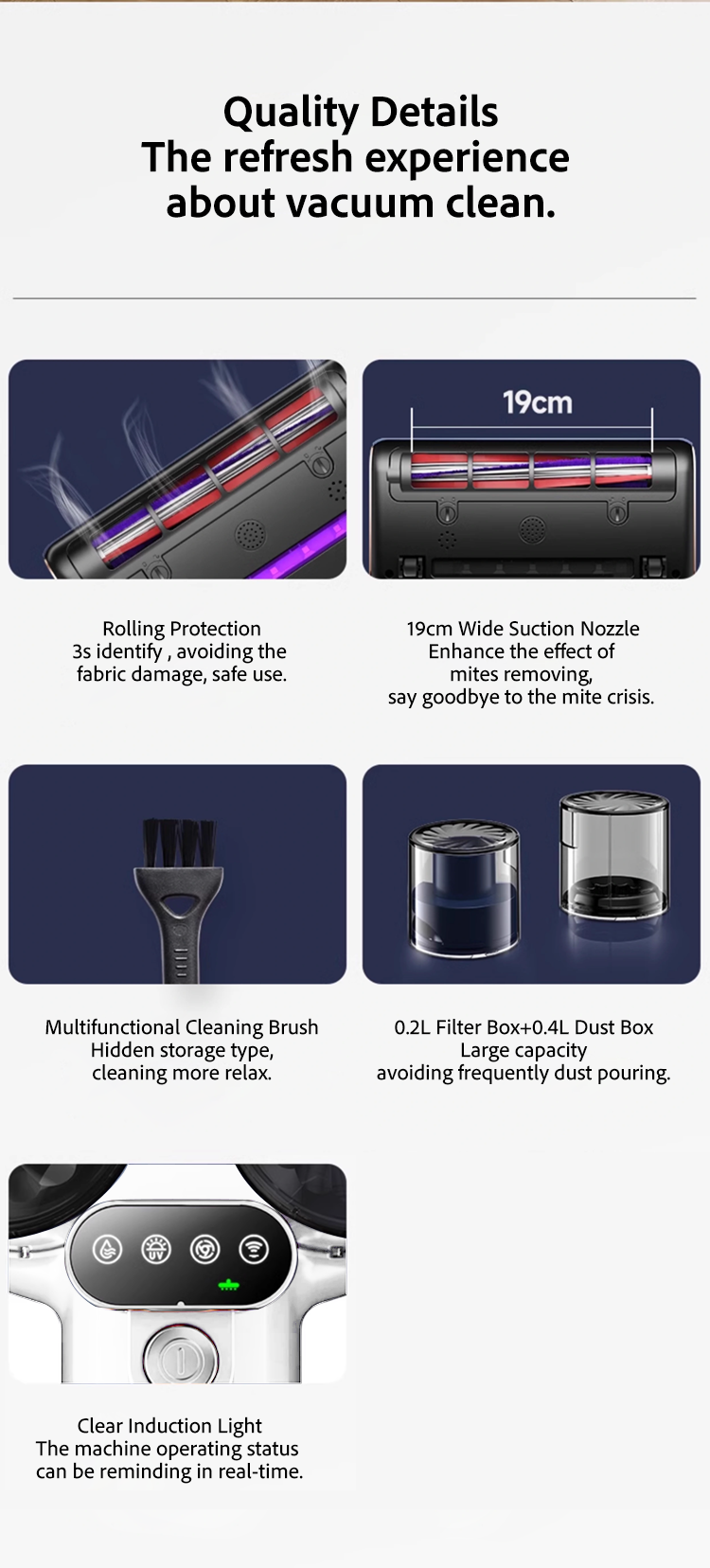 Water Tank Capacity: 0.2L filter cup+0.4L dust cup