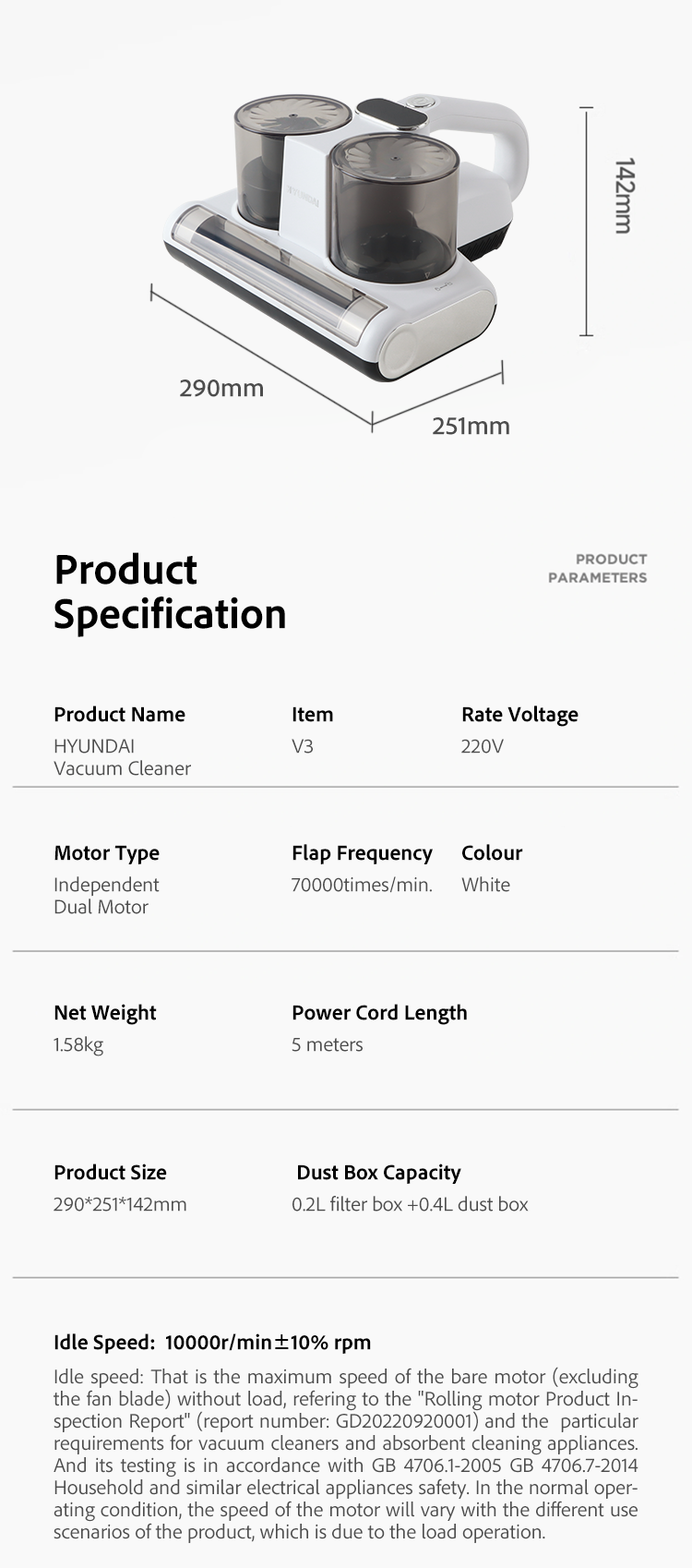 Idle Speed: 10000r/min±10%rpm
